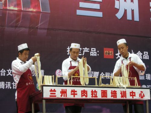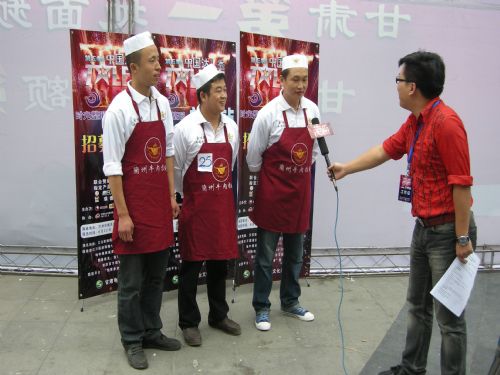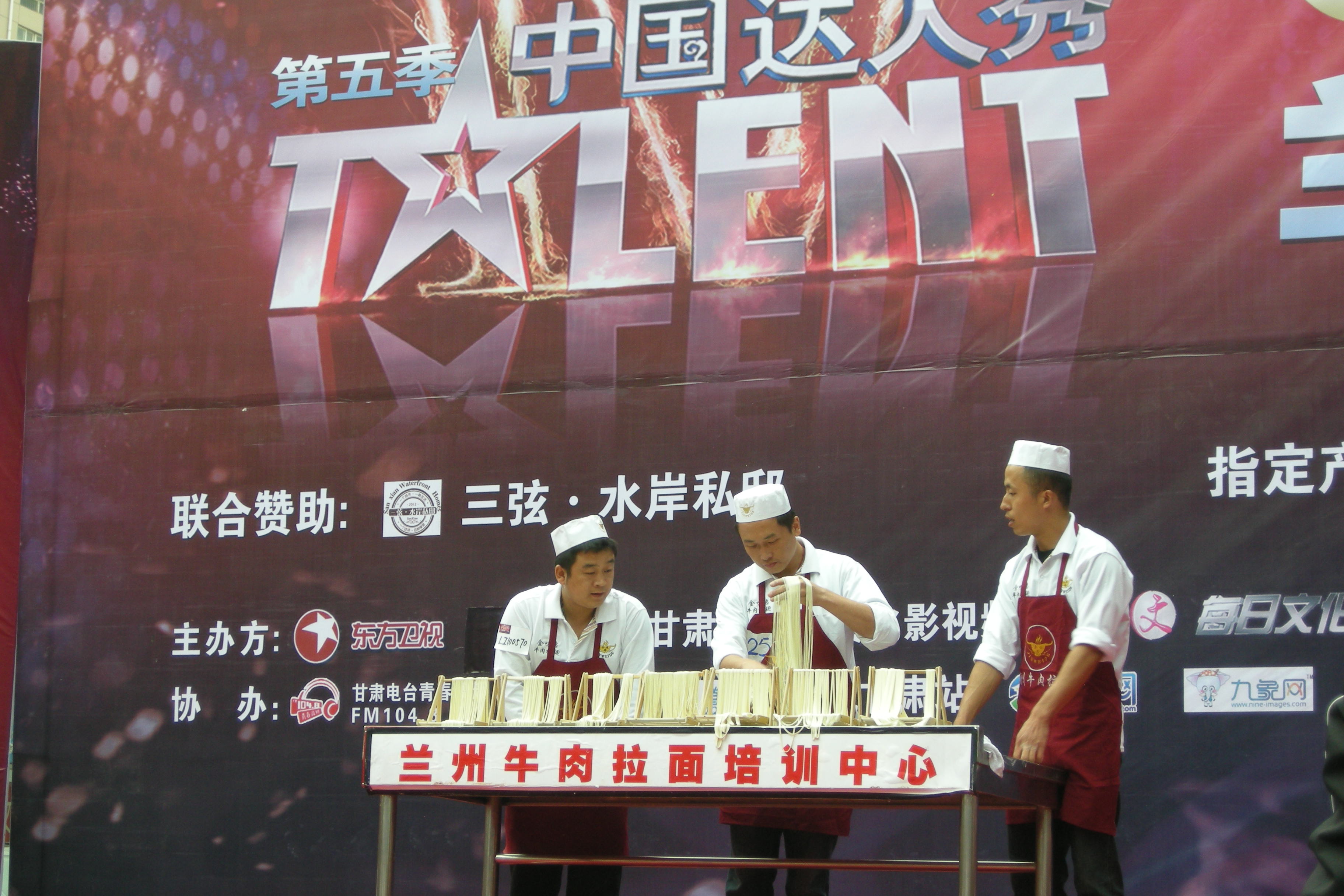 甘肅金味餐飲有限公司金味德拉面店師傅蘇國強、楊愛國、焦富海參加了海選活動,為評委以及現場觀眾展示了蘭州牛肉拉面的絕技,以精彩的表演贏得了評委的高度贊揚以及現場觀眾的熱烈掌聲!