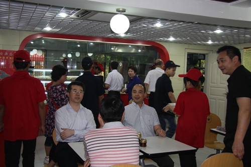 廈門市政府接待辦主任、蘭州市駐廈門辦事處主任、廈門江頭街道辦事處主任、甘肅金味餐飲有限公司董事長共同為福建廈門金味德蘭州牛肉拉面店揭牌