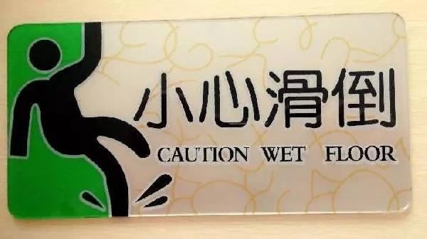 店內做好相關警示設施和標識的布置,適量貼放“小心地滑”、“注意腳下”等警告類標志。