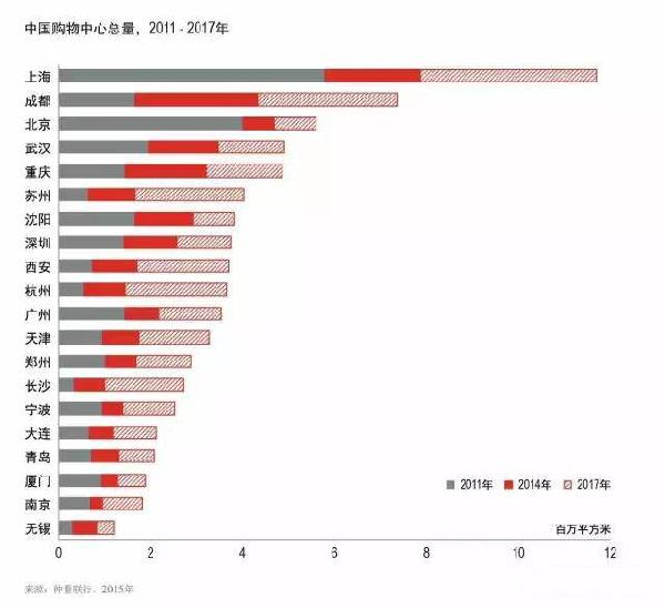 從下面這張圖則可以更清晰地看出各地商場快速擴張的勢頭。