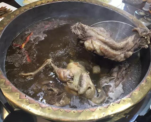 “馬家大爺牛肉面”秉承了懷慶府(今河南博愛縣)清化蘇寨陳家小車老湯牛肉面的做法,以湯為百鮮之源,注重用湯,精于制湯,尤其講究“清湯”的調制,清濁分明,取其清鮮。湯的制法,早在《齊民要術》中已有記載,經過長期實踐,用牛肉、肥土雞、牛肉為主料,采用三十多種調料和中藥調配熬制的老湯,經沸煮、微煮,使主料鮮味溶于湯中,中間要經過兩次“清俏”,成品清澈見底,味道極其鮮美,是牛肉面里最入味兒的湯料,不僅鮮美,而且不膻不腥,味厚色醇,香濃鮮美, 滋陰潛陽,補陰虛,清血熱。養血安神,祛風通絡入脾、肺、腎三經,有健脾、補肺、固腎、益精之功。曾在清代盛極一時,后因戰亂老馬家再也未開過的牛肉面館。