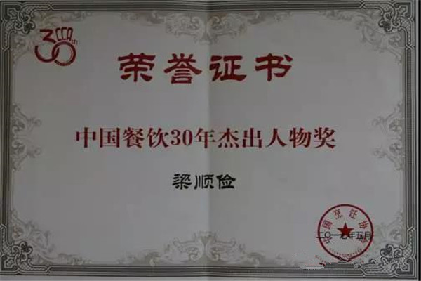 2017年金味德品牌創(chuàng)始人梁順儉被中國(guó)烹飪協(xié)會(huì)評(píng)為中國(guó)餐飲三十年杰出人物。
