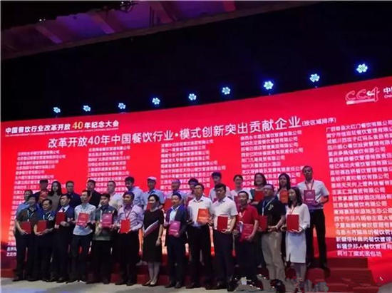 2018年是貫徹黨的十九大精神開局之年,是中國改革開放四十周年,是中國餐飲業深化改革,開啟新時代的創新之年。5月29日中國烹飪協會在北京隆重召開的“2018(第十二屆)中國餐飲產業發展大會和中國餐飲行業改革開放40年紀念大會”上,為了深入推進中國餐飲業的繁榮發展,積極探索新時代中國餐飲業的新征程,共同見證改革開放中實現的新突破,甘肅金味餐飲有限公司榮獲改革開放40周年中國餐飲行業“模式創新突出貢獻企業”獎。