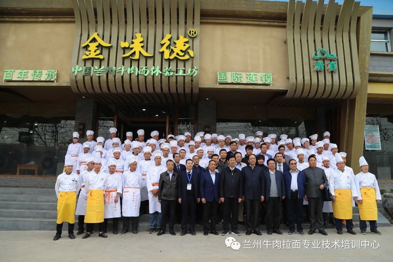 甘肅省副省長張世珍、甘肅省商務廳廳長張應華,副廳長任福康,蘭州市商務局副局長劉志強、蘭州牛肉拉面行業(yè)協(xié)會會長馬利民,甘肅金味德牛肉拉面產(chǎn)業(yè)集團董事長梁順儉等一行與學員合影。