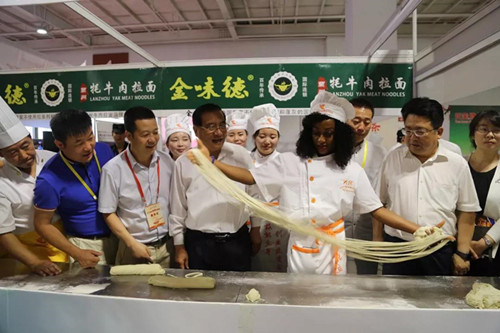 6月23日由中國烹飪協會主辦的中國面條博覽會在蘭州開幕。中國面條齊聚黃河之濱~金城,蘭州拉面獨占鰲頭。來自全國各地的200余家企業參加。博覽會上全國各地的面條匯聚一堂,各顯特色,風味一絕。開幕式上公布了蘭州牛肉拉面行業標準;舉行了蘭州牛肉拉面信息服務大數據平臺上線啟動儀式;重點探討交流“一帶一路”沿線地域面食文化、蘭州牛肉拉面如何融入“一帶一路”建設、餐飲業如何拓展“一帶一路”市場,公布蘭州牛肉拉面示范店認定名單并授牌;公布中國十大面條認定名單并授牌。中美文化交流協會暨北美蘭州拉面飲食文化集團與蘭州牛肉拉面行業協會、甘肅金味德蘭州拉面文化產業集團簽署蘭州牛肉拉面挺進北美、加拿大、墨西哥市場的戰略合作協議。