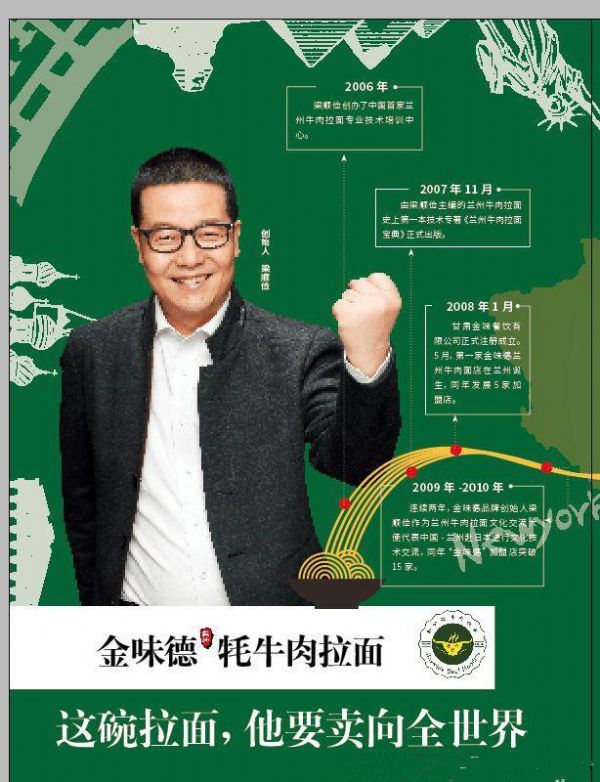 在2016年下旬推出弘揚中國文化之蘭州牛肉拉面飲食文化,少年研學項目受到學校、家長、小孩旅游公司的熱烈歡迎,全國餐飲企業紛紛效仿,為中式餐飲文化傳承發展做出突出貢獻。