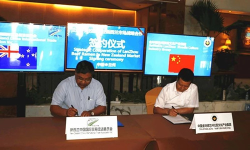 新西蘭中國國際貿(mào)易促進(jìn)委員會(huì)與與金味德蘭州拉面文化產(chǎn)業(yè)集團(tuán)簽訂市場(chǎng)合作協(xié)議