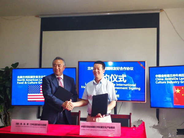 甘肅省商務(wù)廳副廳長任福康說,蘭州金味德拉面簽約進(jìn)軍國際市場,起了很好的帶頭作用,有助于把蘭州牛肉面產(chǎn)業(yè)做大做強(qiáng),提升了中國食品在美國的知名度和所占份額。他希望大力培育企業(yè)品牌,建設(shè)集科研開發(fā)、技術(shù)培訓(xùn)、生產(chǎn)加工為一體的牛肉拉面產(chǎn)業(yè)體系。搶抓“一帶一路”發(fā)展機(jī)遇,加快拓展海外市場,加大走出去步伐,讓牛肉面成為蘭州名副其實(shí)的一張名片。