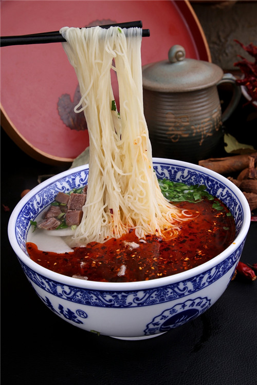 是蘭州牛肉面中最常見(jiàn)的品種,細(xì)面的拉制一般七手成型,面條直徑大約在2.5~2mm左右。粗細(xì)適中、老幼咸宜,口感筋道爽滑,是深受歡迎的面型。