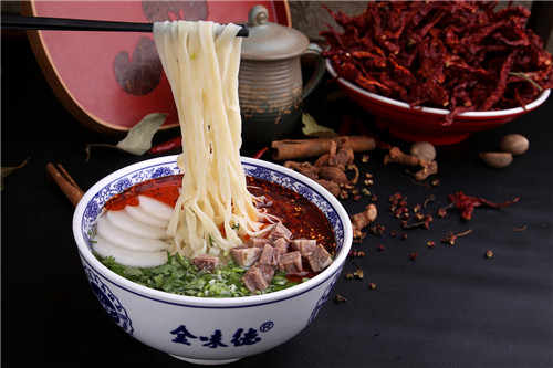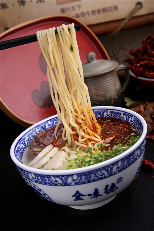 扁形面條,韭菜葉的形狀,寬約4~5mm左右,一般六手成型。溫潤(rùn)透明,纖薄而不粘連。口感精滑明麗,為喜愛(ài)扁形面條的食客所喜愛(ài)。