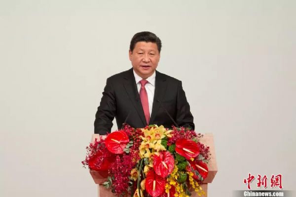 資料圖:2014年12月20日,中共中央總書記、國家主席、中央軍委主席習近平出席澳門回歸祖國15周年大會暨澳門特別行政區(qū)第四屆政府就職典禮。圖為習近平發(fā)表重要講話。中新社發(fā) 盛佳鵬 攝