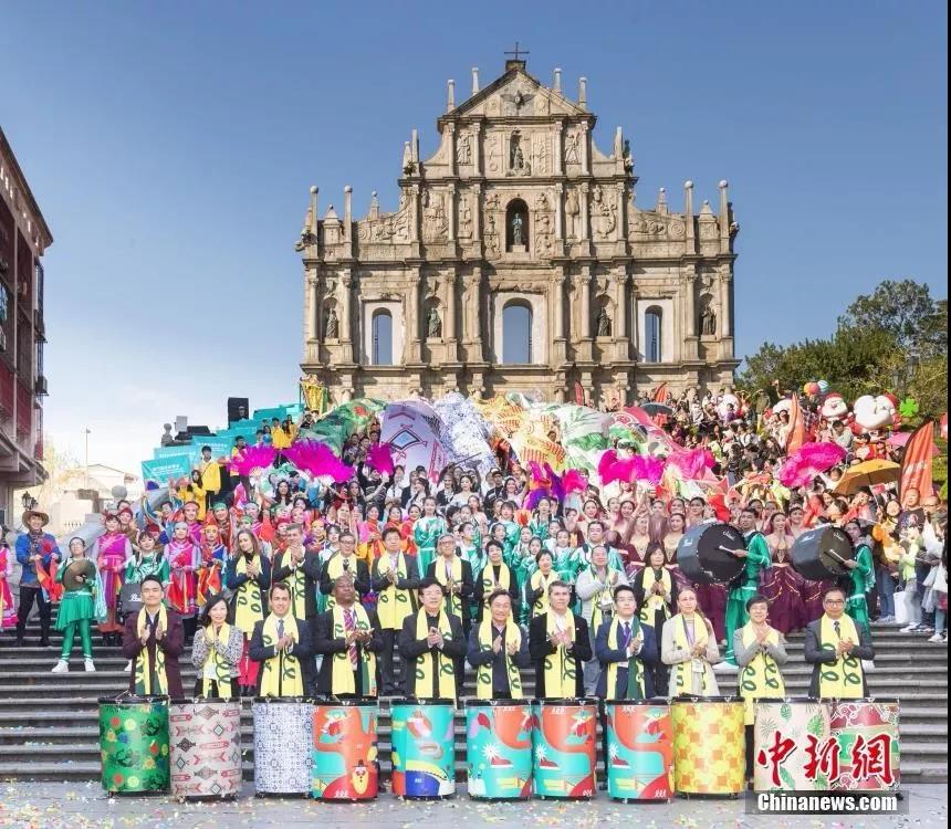 資料圖:2019年12月8日下午,由澳門特區(qū)政府文化局主辦的 “2019澳門國際幻彩大巡游”在著名景點大三巴牌坊前掀開序幕,來自“一帶一路”沿線國家及地區(qū)80隊巡游表演隊伍參與演出,共慶澳門回歸祖國20周年。中新社記者 鐘欣 攝