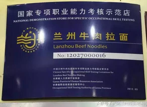 五、2012年蘭州牛肉拉面被國家人社部職業技能鑒定中心列為我們國家專項職業能力鑒定項目之一。同年底由甘肅省人社廳發起成立的蘭州牛肉拉面職業培訓學校《甘肅興隴蘭州牛肉拉面職業培訓學校》正式成立。
