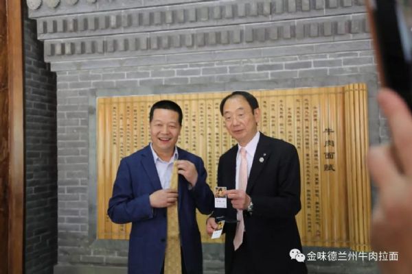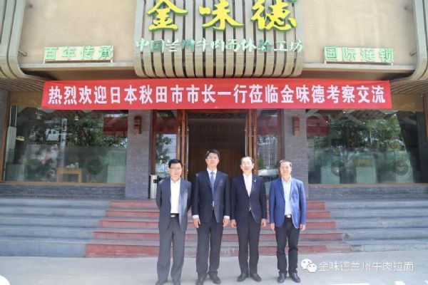 5月19日,日本秋田市長一行,蒞臨中國蘭州牛肉拉面國際聯盟·金味德拉面文化產業集團考察交流,甘肅金味德拉面文化產業有限公司董事長、蘭州牛肉拉面國際聯盟主席—梁順儉接待了代表團全體人員。