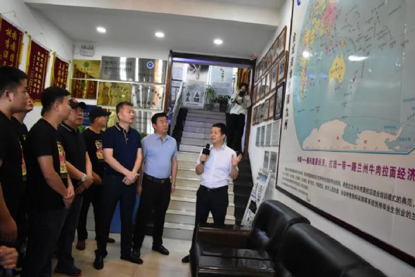 參訪團一行參觀考察甘肅興隴蘭州牛肉拉面職業培訓學校、興隴蘭州牛肉拉面國際商學院;集團董事長梁順儉介紹公司發展情況及講解金味德蘭州牛肉拉面產業集團組織架構。