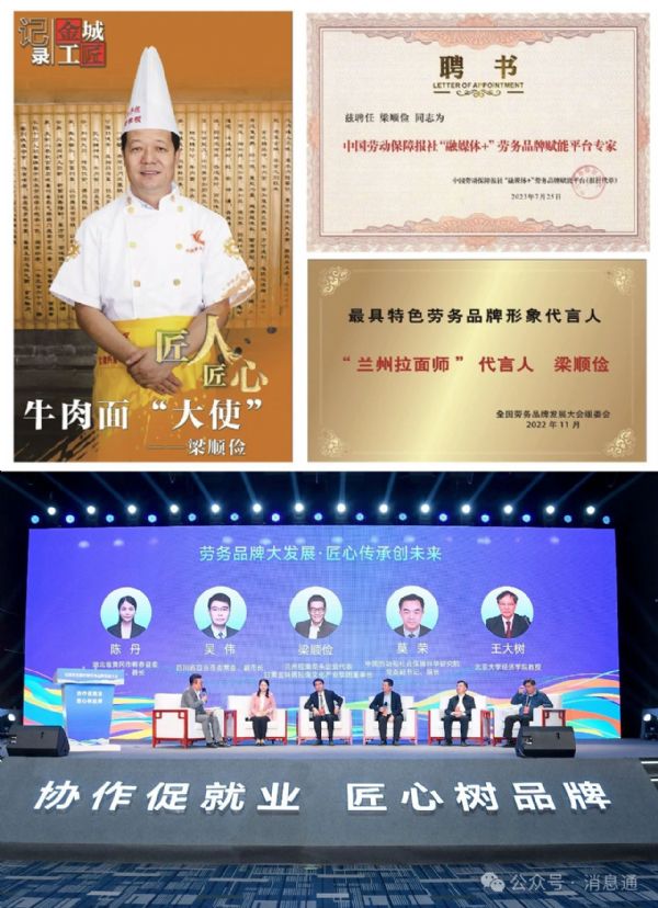 八、2022年8月,甘肅“蘭州拉面師”在人社部組織的全國特色勞務(wù)品牌評選中,被評為中國20個最具特色的勞務(wù)品牌之一。2023年9月,作為蘭州拉面龍頭企業(yè)代表參加了勞務(wù)品牌會議并作為訪談嘉賓。